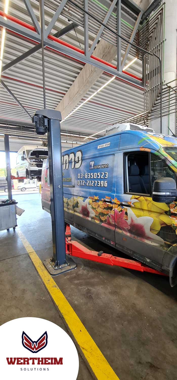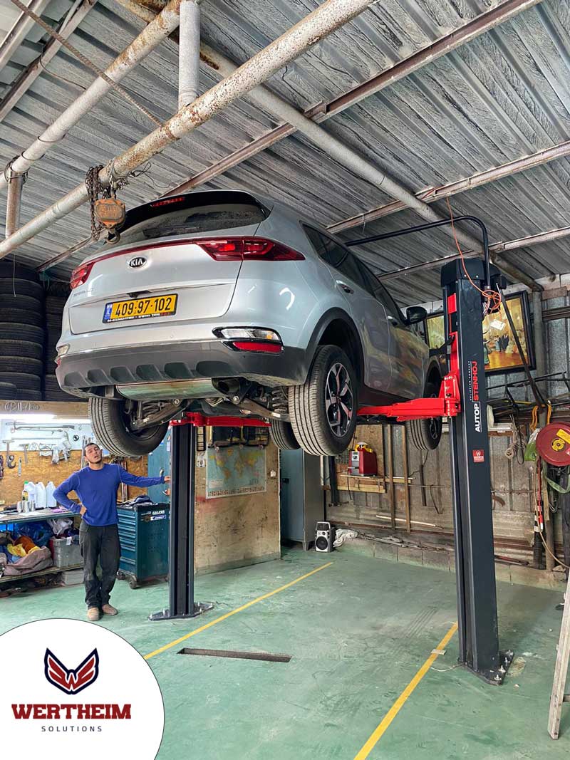 ליפט 2 עמודים מדגם Maestro המפורסם בעולם עם האמינות המירבית שעובד ועובד לאורך שנים בכושר הרמה 6.5 טון ללא בסיס תחתון.