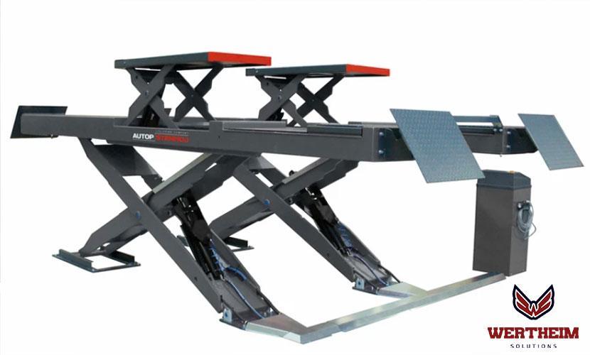ליפט מספריים תומך גלגלים, מסילות, בכושר הרמה 5 טון. מנגנון נעילה הליפט מגיע עם מקסימום בטיחות עם מנגנון נעילה מכני. ברגע שהליפט נעצר הנעילה ננצרת באופן אוטומטי. בשל ההנמכה האוטומטית לתוך הנעילות, הורדה מקרית של המסילה אינה אפשרית. בסיס תחתון מגולוון מסגרת הבסיס המגולוונת חזקה ביציבות הגבוהה שלה ובכך מבטיחה תנועת מספריים אופטימלית על פני המחליקים. תאורת LED מגנטית גמישות מרבית לתאורה מתחת לרכב הרים הודות לתאורת פלטפורמת ה-LED המגנטית. ליפט פנימי לשחרור הגלגלים הליפט הפנימי יכול להרים כלי רכב קטנים כגון פולקסווגן Up /Z4 / Z3, כמו גם כלי רכב סטנדרטיים כגון T7 קצר. אורך המסילה: 1420 – 2100 מ"מ כושר הרמה: 3500 ק"ג. גובה מינימלי 0 מ"מ משולב במסילת הליפט.