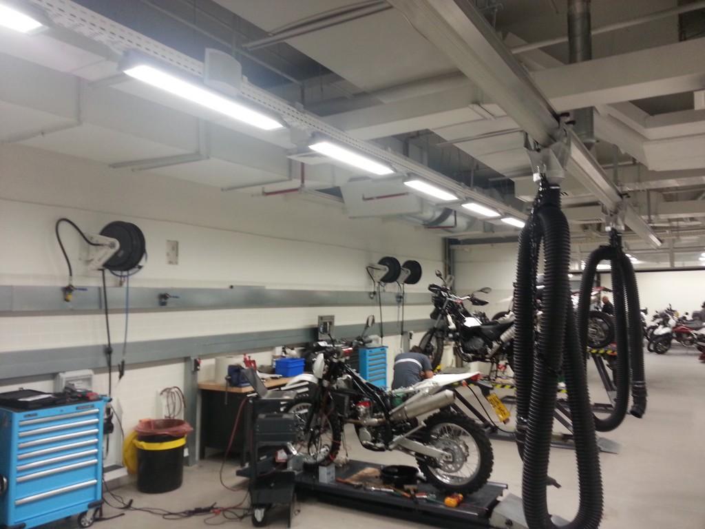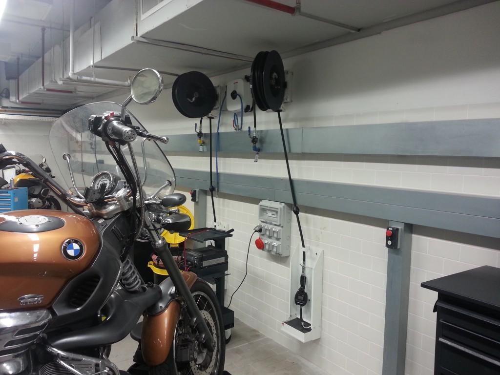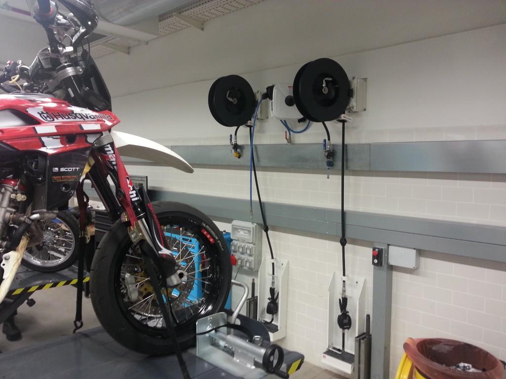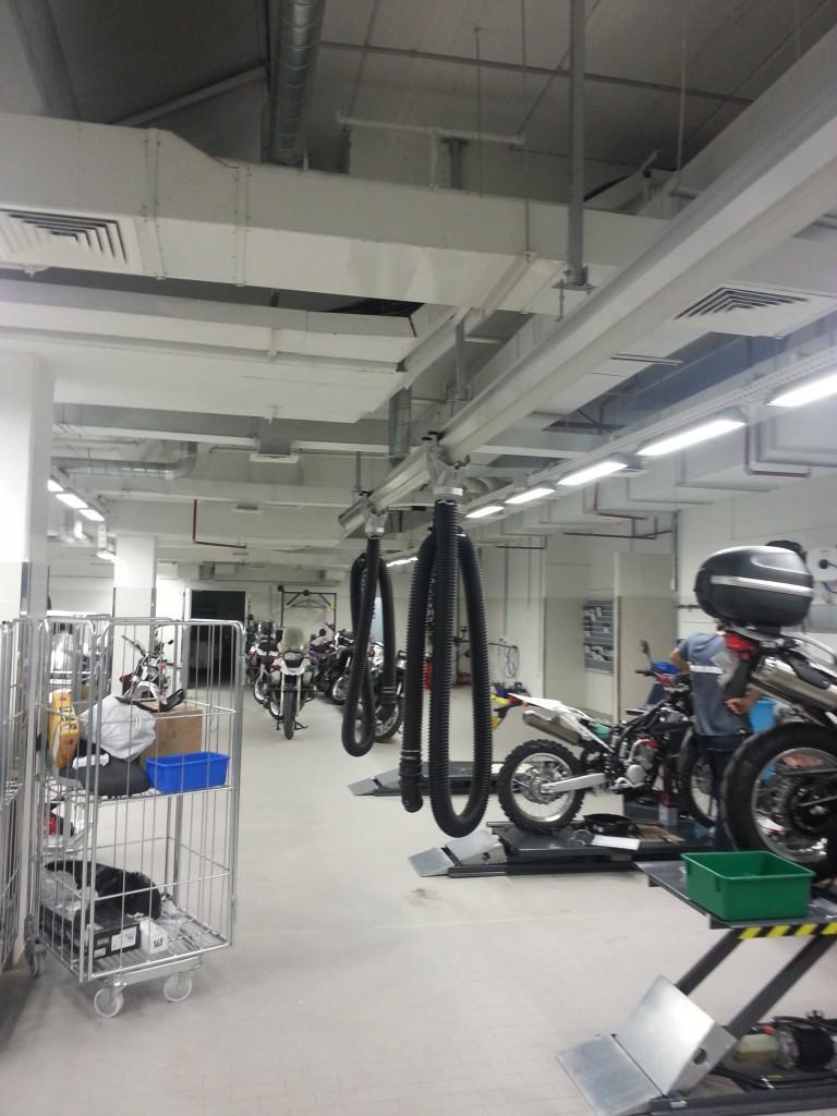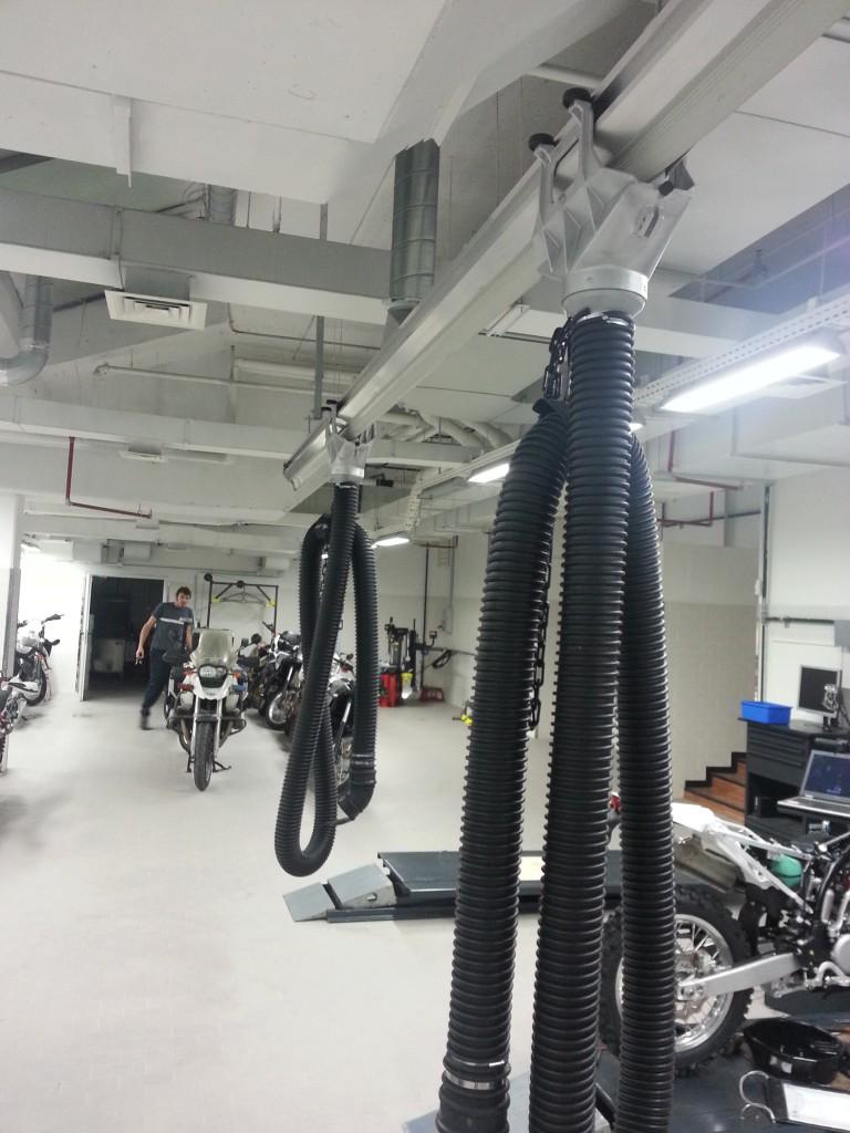 במוסך האופנועים בתל אביב הותקנה מערכת שאיבת גזים מותאמת לאופנועים מתוצרת S-TEC גרמניה ומערכת שמנים גלגלות שמן, אוויר חשמל מתוצרת SAMOA