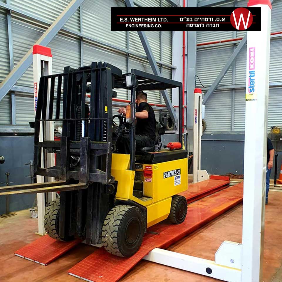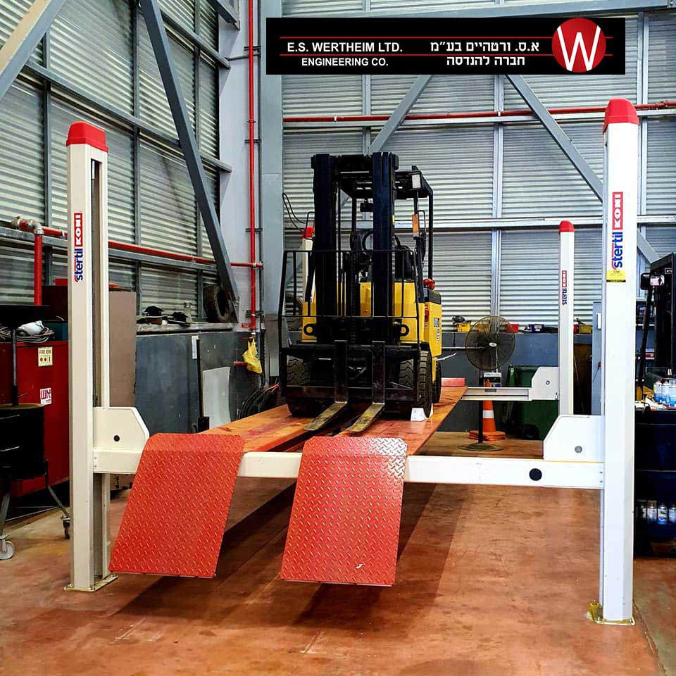 ליפט 4 עמודים בכושר הרמה 4 טון, אורך מסילות 6 מ’ המתאים לכל סוגי הרכבים.